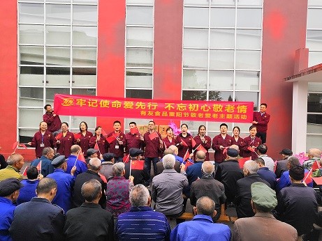 为深入开展“不忘初心 牢记使命”主题教育实践活动,引导非公企业积极履行社会责任,充分践行有友食品“勤奋工作 创造价值 服务社会 分享快乐”的企业核心价值观,10月9日下午,有友食品党支部组织党员、青年志愿者前往璧山区来凤敬老院和璧山区丁家敬老院开展“牢记使命爱先行 不忘初心敬老情”主题党日活动。为敬老院的老人们送去了粮油、水果、被子等慰问品,还为老人们表演了精彩的节目,受到了老人们的热烈欢迎。