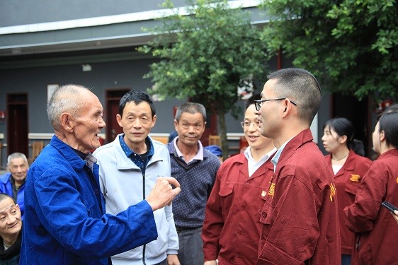 “我和我的祖国,一刻也不能分割……”在璧山丁家敬老院,有友党员和青年志愿者激昂的歌声刚刚响起,老人们就情不自禁的挥动起了手中的小红旗,跟着一起高声歌唱,老人们和青年们用激昂的歌声,表达了对伟大祖国的深切爱意和美好祝愿。在来凤敬老院,有着53年党龄的80岁老党员胡敬昌给大家讲述自己的入党故事,让现场党员深受教育。此外,党员和青年志愿者们还把慰问品送到行动不便的老人床头,和他们拉家常,帮助老人做卫生,老人们很感动。