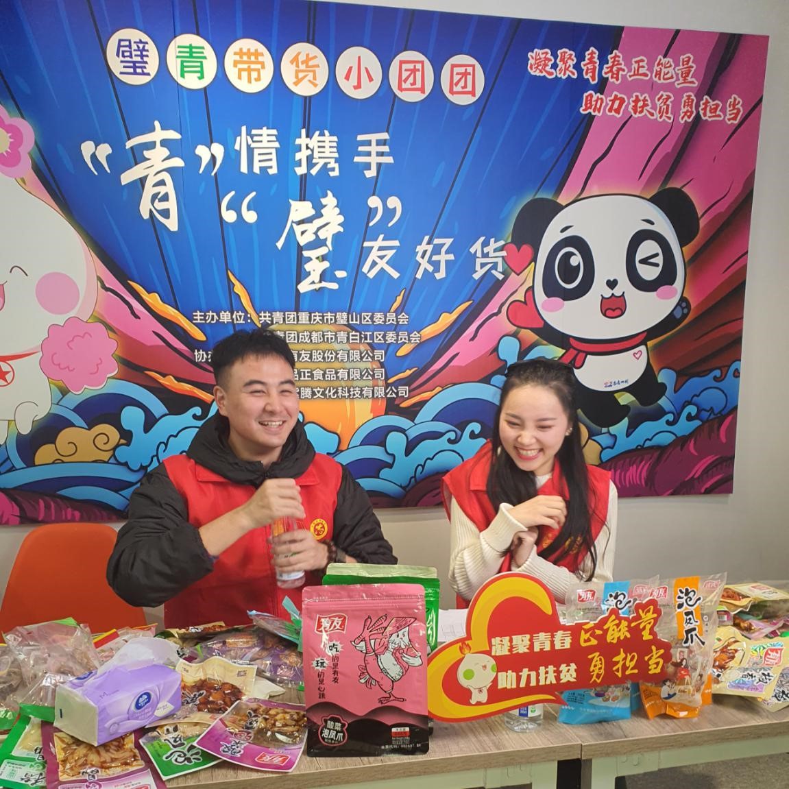 11月27日,由璧山区团区委联合成都市青白江区团区委,在有友食品京东旗舰店直播平台开展了一场“‘青’情携手·‘璧’友好货”西部计划志愿者“网络带货”活动。