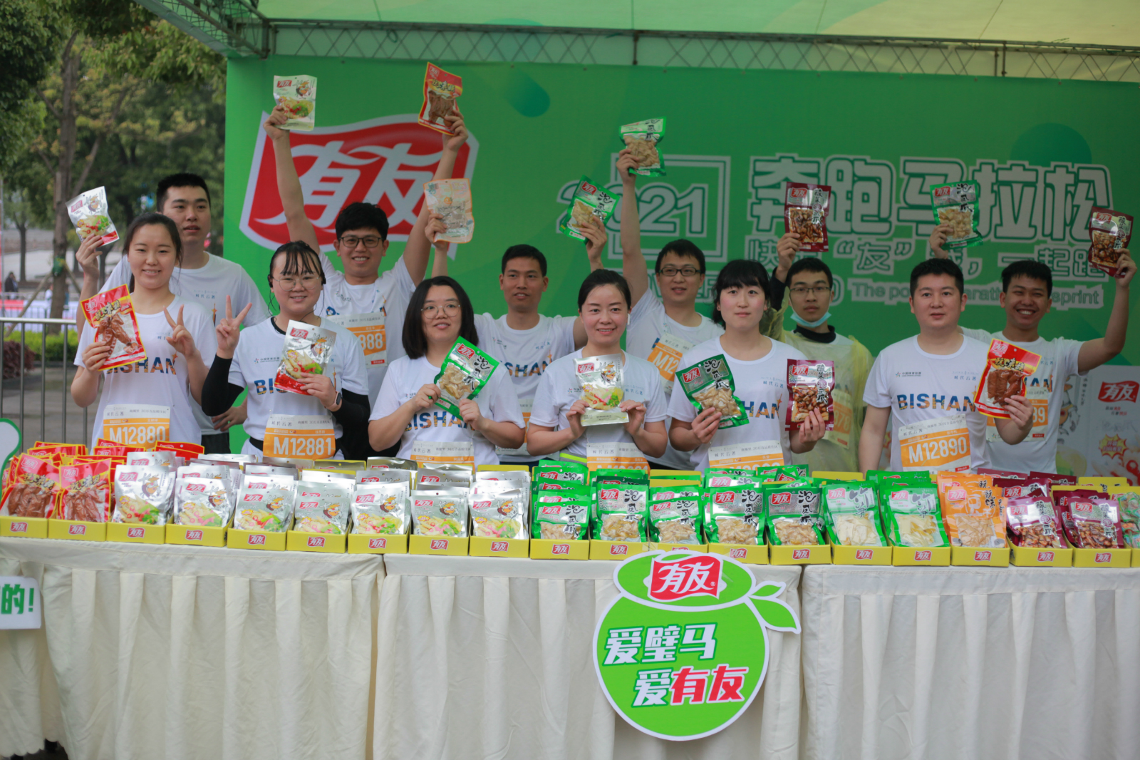 4月11日上午,2021重庆璧山半程马拉松在璧山区人民广场举行,有友食品组织公司员工参加赛事。
