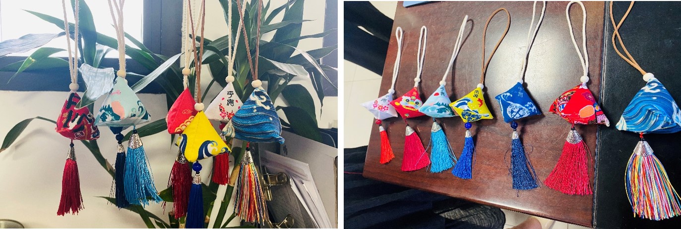 手作香囊是中国重要的非物质文化遗产,端午节佩戴香囊更是中华民族源远流长的传统习俗。本次做香囊活动备受有友家人们喜爱,大家一边穿针引线,一边互相探讨,热闹非凡。