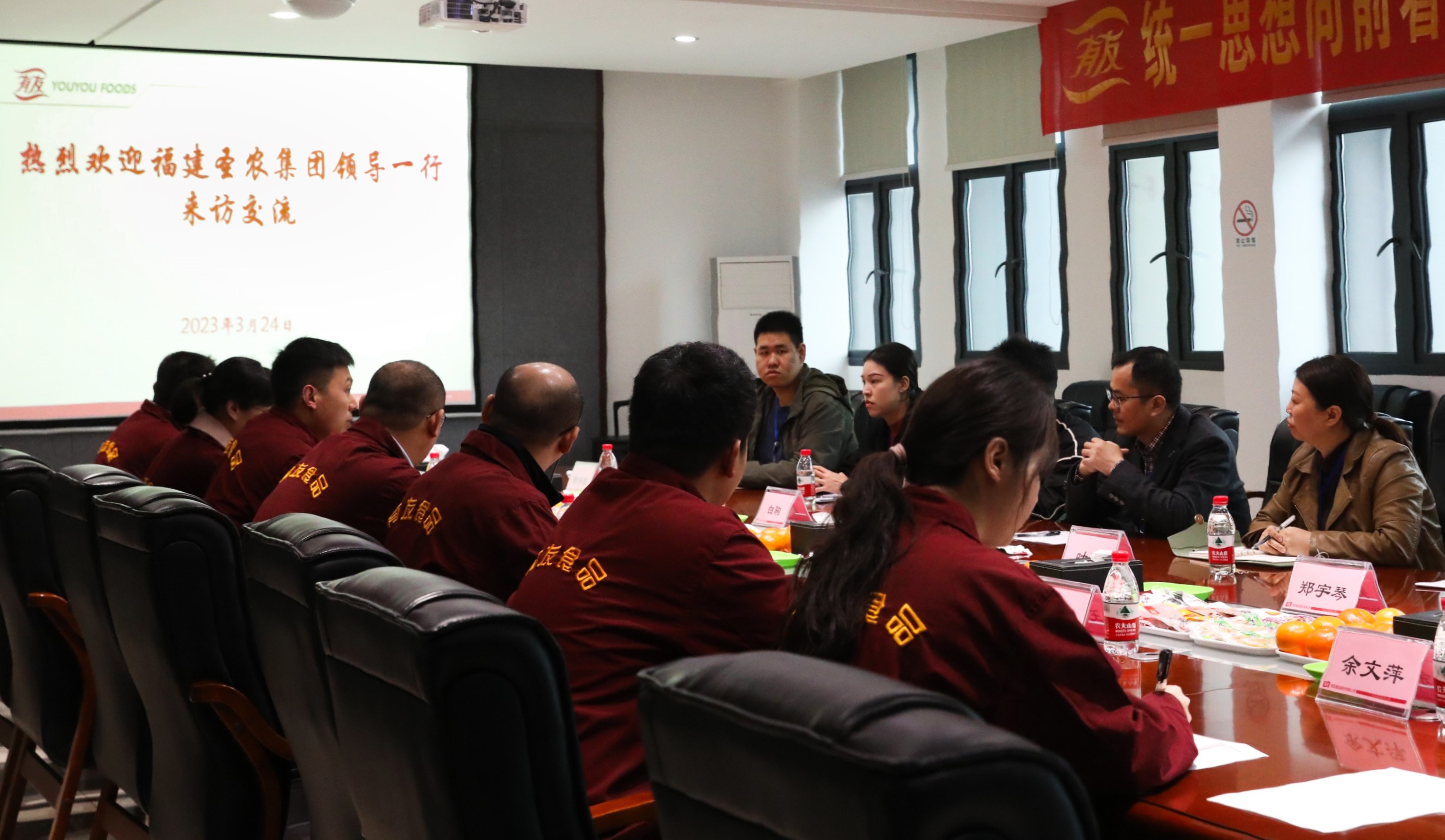 3月24日,福建圣农发展股份有限公司品管部总监叶蔚一行前往开云英超官网_开云online(中国)璧山生产基地参观交流,深入了解有友25年来的发展路径,与开云英超官网_开云online(中国)常务副总鹿游进行座谈交流。