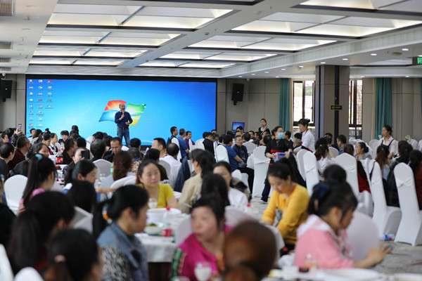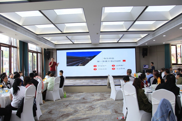 游戏结束后 ,大家三五成群,沿着秀湖公园的林荫步道,漫步至午餐地点。开餐前,公司高管分别做了活动致辞,同时播放了公司宣传片和宣讲一季度大事记回顾,加深员工对公司经营发展的了解,使员工更有归属感和集体荣誉感。