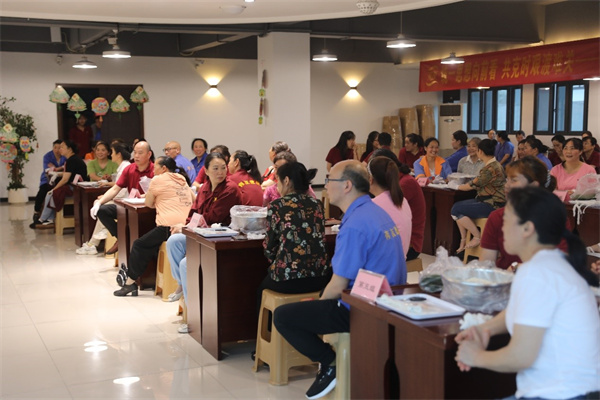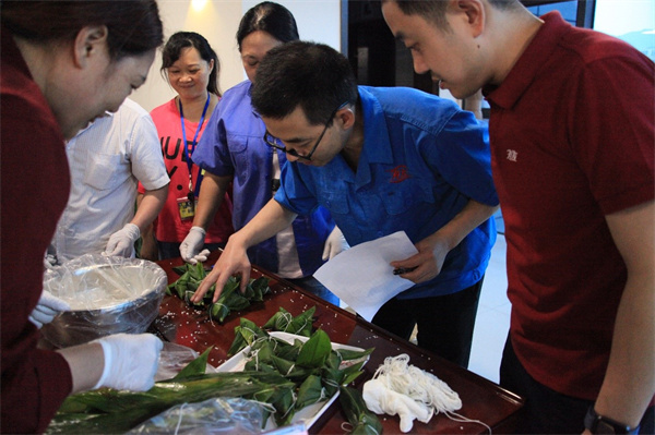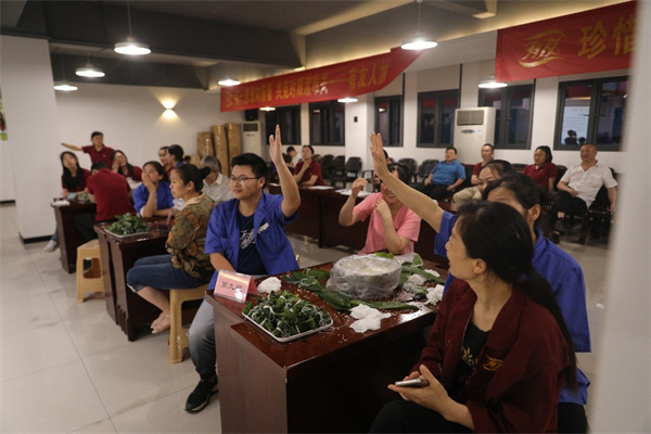 在完成答题活动后,开始了紧张的包粽子比赛。