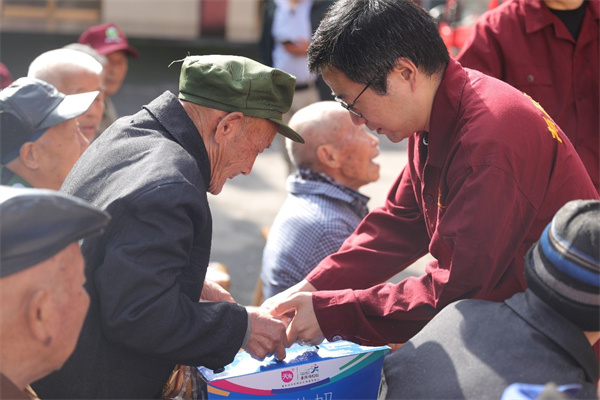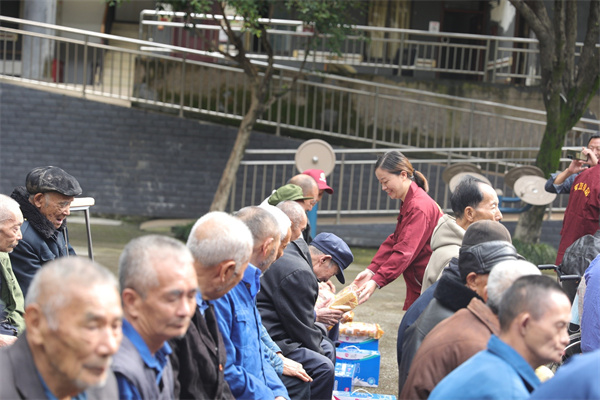 慰问小组代表有友食品向一百余位孤寡老人致以重阳节祝福,并赠送慰问礼品。