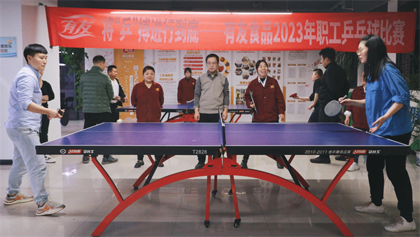 为丰富广大员工业余文体活动,增强团队凝聚力,11月28日,有友食品开展以“将‘乒’搏进行到底”为主题的比赛活动。